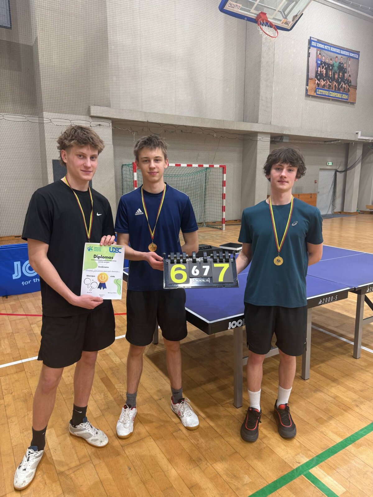 (II f) ir Audrūną Neniškį (I c) bei jų vadovą – fizinio ugdymo mokytoją Mindaugą Barzdenį.