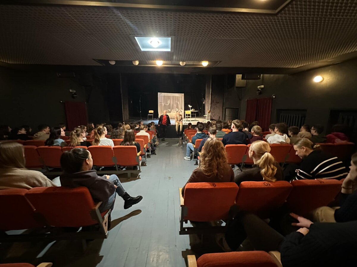 Vasario 6d. dalyvavome projekto patirtinėje veikloje kartu su Panevėžio 5-osios gimnazijos mokiniais ne gimnazijos erdvėse: teatre ,,Menas“ ne tik žiūrėjome premjerą ,,Beveik laimingas“ (pagal J.Kunčinio ,,Tūlą“), bet akimirką tapome aktoriais, kritikais, patarėjais…