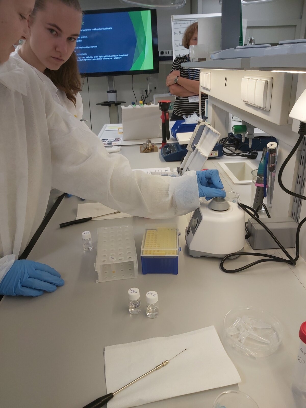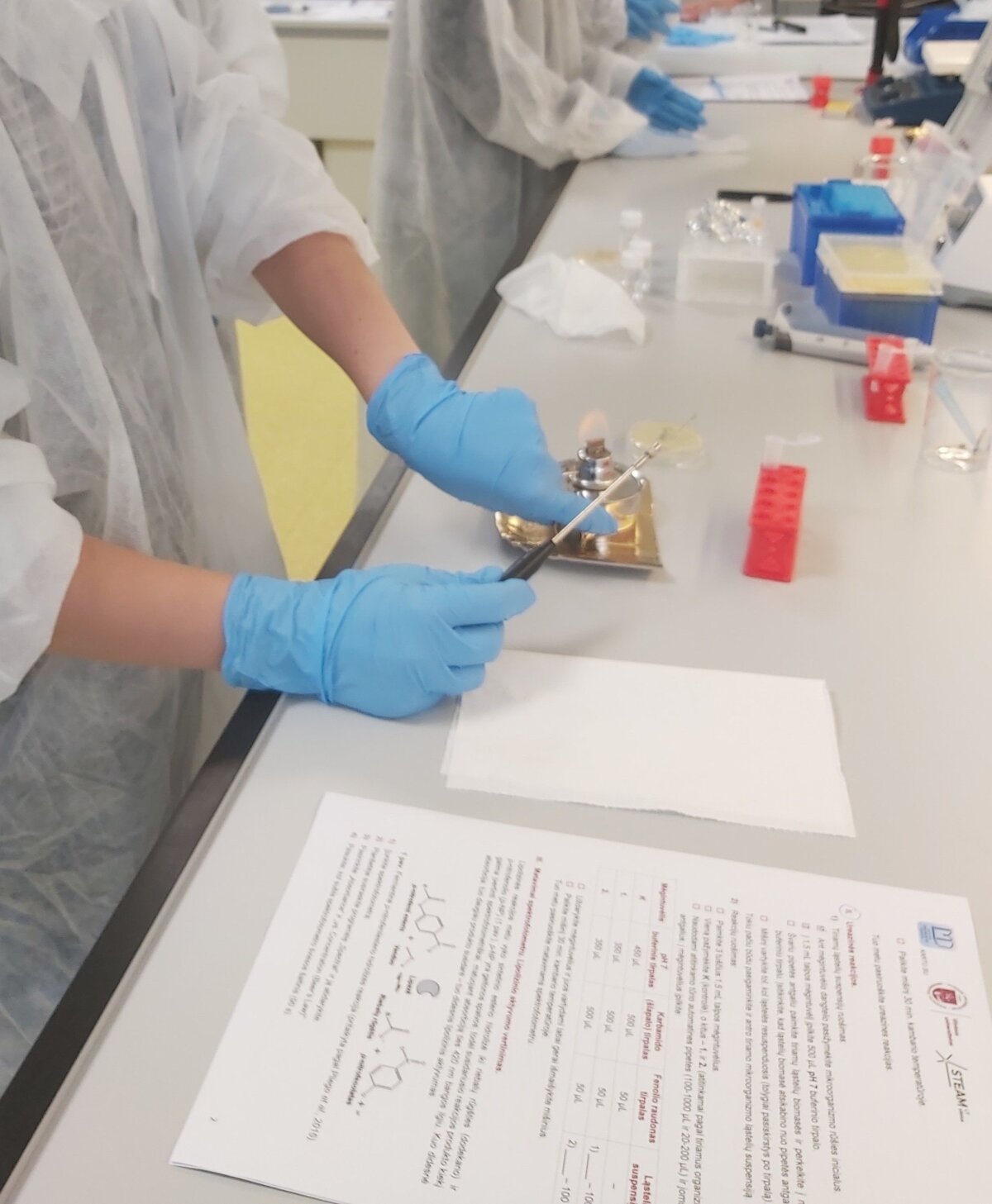 Panevėžio regioniniame STEAM atviros prieigos centre buvo vykdomos praktinės veiklos. Jose dalyvavo 46 mūsų gimnazijos II b, II c, II e ir II f klasių biotechnologijų grupių mokiniai. Šių praktinių veiklų metu mokiniai, naudodami mikroorganizmus, atliko p-NP esterių ir šlapalo hidrolizės tyrimus, išmatavo bei palygino skirtingų mikroorganizmų lipolizinį ir ureazinį aktyvumą.
