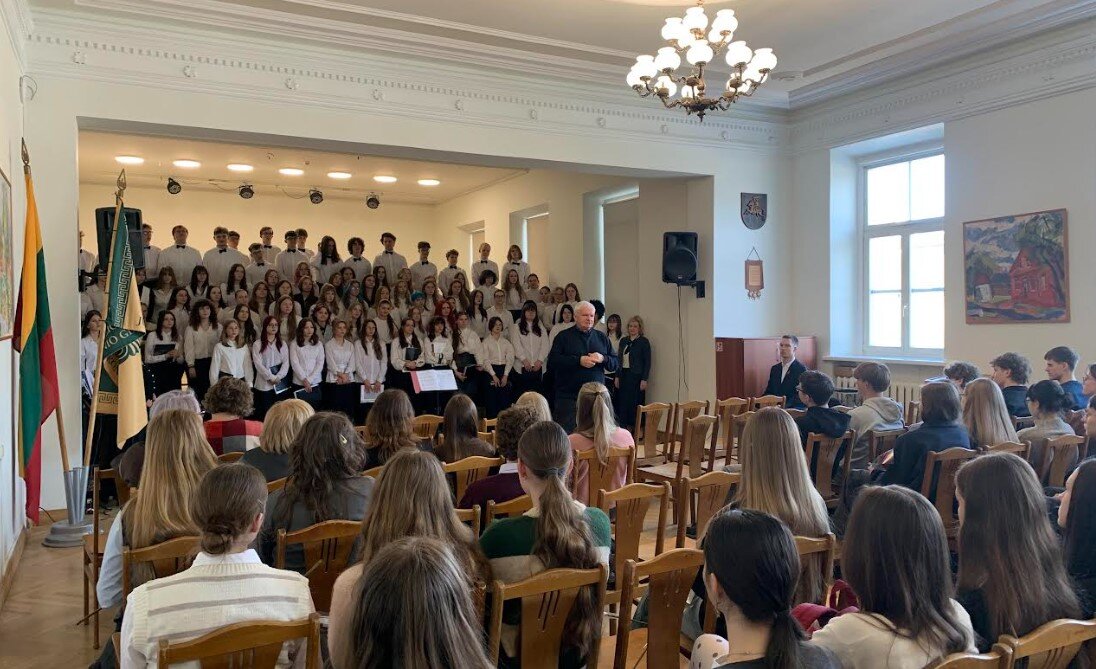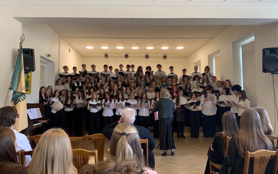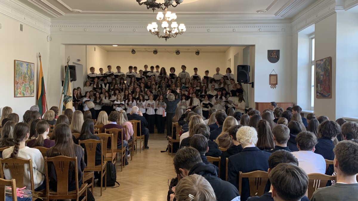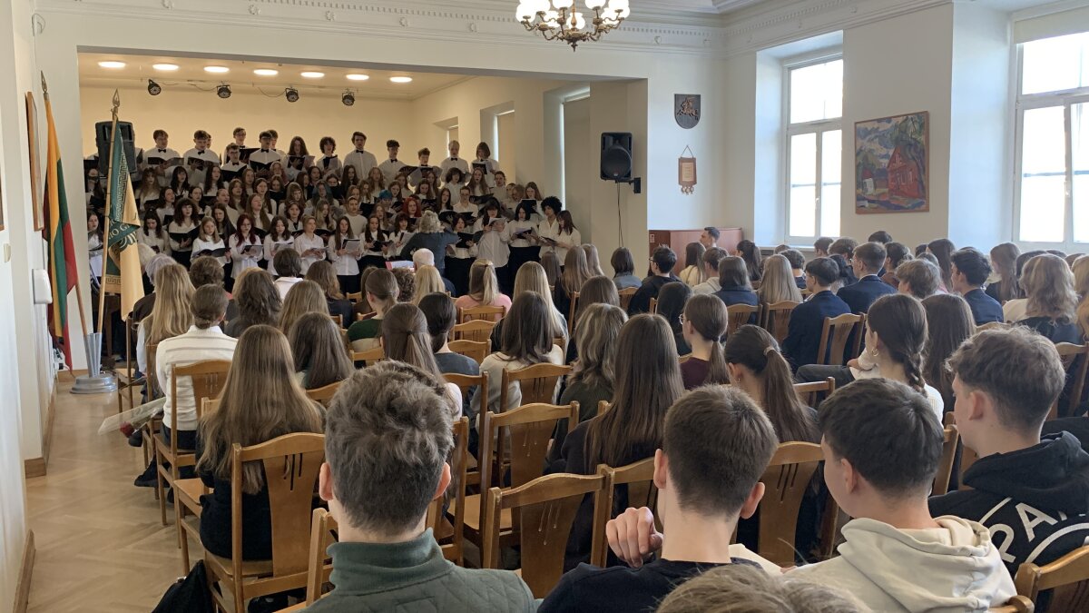 Penktadienį gimnazijos aktų salėje skambėjo dainos ir žodžiai, skirti Lietuvos Nepriklausomybės atkūrimo dienai paminėti. Koncerto metu mūsų ir 5-osios gimnazijos jungtinis jaunimo mišrus choras, vadovaujamas choro vadovių Jelenos Grobovos ir Zitos Pilkauskienės, atliko žinomas lietuvių liaudies dainas ir populiarius ar mažiau girdėtus lietuvių autorių kūrinius. Gimnazijos bendruomenę ypač nustebino M.K. Čiurlionio harmonizuota lietuvių liaudies daina „Dainų dainelė“, kurią choras atliko gestų kalba. Koncerto kulminacija tapo didingas Vaclovo Augustino kūrinys lotynų kalba – kantata „Tėvynei giedu naują giesmę“ („Cantate Patriae“).
