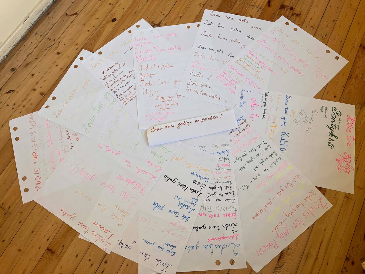 Gimnazijoje tebevyksta renginiai, skirti gimtajai kalbai. Kovo 4 d. lietuvių kalbos mokytoja Eglė Noreikienė ir jos mokiniai visą bendruomenę pakvietė dalyvauti ilgiausio dailyraščio performanse „Žodis turi galią“. Mokytojai, mokiniai, rūbinės budėtojos – net 113 žmonių užrašė žodį, kuris, jų manymu, yra pats galingiausias. Iš viso užrašytas 51 skirtingas žodis. Dažniausiai kartoti žodžiai MEILĖ ir LAISVĖ. Jie ypač prasmingi šiandien, kai ruošiamės minėti Lietuvos nepriklausomybės atkūrimo dieną. Stiprybės ieškokime, remkimės ir kitus galią turinčius žodžius – ŠEIMA, GIMTINĖ, DEMOKRATIJA, TEISYBĖ, IŠMINTIS, KŪRYBA.